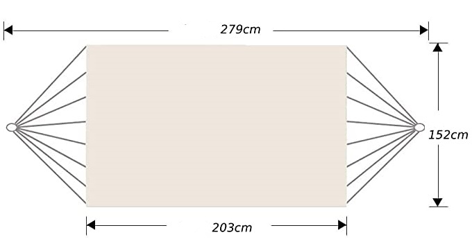 Wystarczy zaczepić go o silne gałęzie i już można odpoczywać na łonie natury. Wymiary siedziska wynoszące 200 x 150 cm zapewnią komfortową przestrzeń 1 lub 2 osobom dorosłym.