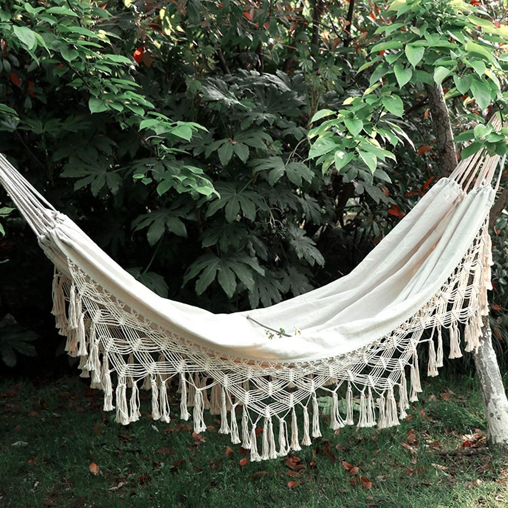 Styl boho widoczny w estetycznym wykończeniu hamaka frędzlami sprawia, że będzie on stanowił ozdobę Twojego ogrodu.